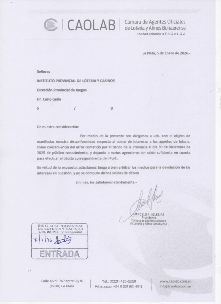 Ante error bancario, CAOLAB solicita al IPLyC el no cobro de intereses a los agentes afectados.